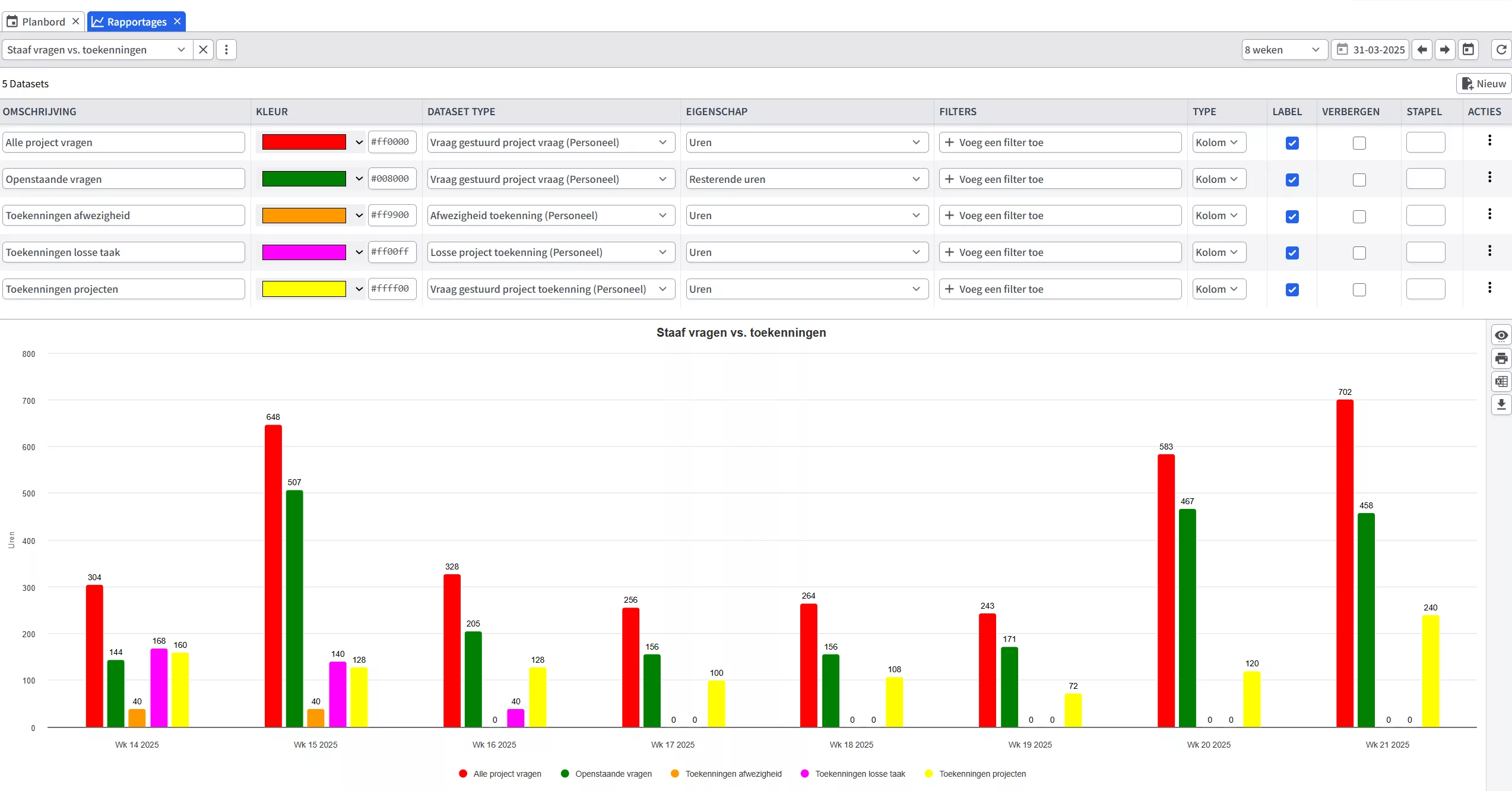 ziet u direct wat het effect van een wijziging is binnen andere onderdelen van het planbord.